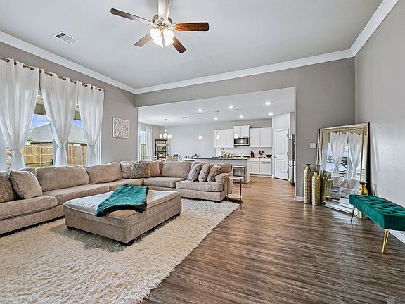 Step inside this immaculate, like-new home and experience modern comfort with timeless style. Just under 3 years old, this home has been exceptionally maintained and thoughtfully updated. A welcoming foyer leads into the spacious open-concept living area, where natural light fills the space through large windows overlooking the backyard. The living room centers around a beautiful gas log fireplace with a classic mantle. The kitchen is a true centerpiece, featuring a large island with seating, abundant cabinetry, sleek countertops, and a corner pantry. All stainless steel appliances, including the refrigerator, remain. Upscaled lighting and fixtures add an elegant touch throughout. The primary suite is privately situated on one side of the home and overlooks the backyard. The ensuite bath features dual vanities, a separate tile shower, a relaxing garden tub, and a massive walk-in closet measuring 19'5" x 9'11"—plenty of space for organization and comfort. Three additional bedrooms are located on the opposite side of the home, each spacious with double-door closets and a shared full bath. The split floor plan ensures both privacy and functionality. Step into a spacious backyard designed for comfort and functionality. A freshly painted covered patio opens to a 12x12 wood pergola—designed for outdoor living and entertaining. The yard is fully fenced with a 6’ wood privacy fence and neatly landscaped for easy upkeep. Additional highlights include fresh interior paint in neutral tones, a repainted exterior patio, and a remaining security camera system for added peace of mind. Located in a desirable neighborhood with resort-style amenities—including a community pool, playground, clubhouse, and fitness center—this home offers the perfect blend of comfort, convenience, and community.
