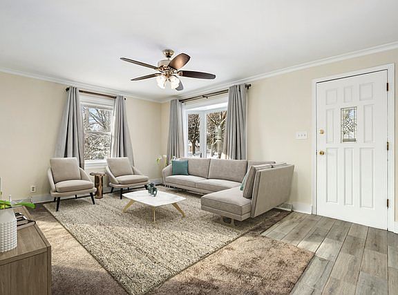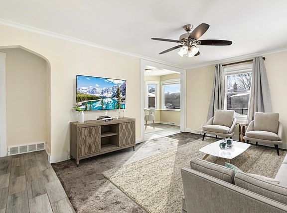 Incredible value and opportunity to purchase this cozy 3Br/1.5Ba home in the Belmont Heights section of Dunning. Very well maintained with recently replaced HVAC in 2021, roof/gutters in 2015, fresh carpet newly installed, and aesthetic updates both inside and outside. Main level offers a living room, kitchen with separate dining area, two generous bedrooms, and a full bathroom. Upstairs is a suite with a third, huge bedroom that offers an attached half bath - this second level also has a separate rear entrance making it perfect for an in-law suite or multi-generational living. No basement, no worries - home is on a crawl space. Private driveway leads to a two car garage, as well as a rear patio area and yard. Easy access to Schiller Woods, Hiawatha Park, shopping at The HIP, and fantastic dining along Harlem.