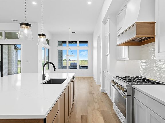 Beautiful Wyatt James Builder NEW CONSTRUCTION on acre lot in gated community! Estimated completion in November 2025! Thoughtfully designed open concept plan. with spacious living area with Western Window System slider door providing expansive view to covered backyard and outdoor living area with fireplace. Chef inspired kitchen includes beautiful quartz countertops, large social island, custom built site finished cabinets, GE Monogram Appliance Collection including Gas cooktop. Plus separate Prep Kitchen, making entertaining effortless! All four bedrooms are en-suite, offering privacy for family and guests!. The large primary suite offers freestanding soaker tub, large full tile drop slab walk in shower, dual vanities, and a generous walk in closet. Also included in this plan are game room, media room and private office off the entry! Lovely high end luxury finishes throughout including beautiful nail down site finished white oak hardwood flooring in the living areas, primary bedroom, halls and study plus quartz in all baths! Quality construction includes Anderson Windows, 8 foot solid core doors throughout, hardware, plumbing and lighting in modern black matte finish,Class 4 Impact Tilcor Metal Shingles with a 50 year warranty, Huber Zip System sheathing. Data drops in all bedrooms, living room, study, flex room, and patio areas, Full Foam Encapsulation insulation, full sod and irrigation and landscaping. Easy access to the Dallas North Tollway, historic downtown Celina, shopping and restaurants. Children will attend sought after Celina ISD schools!