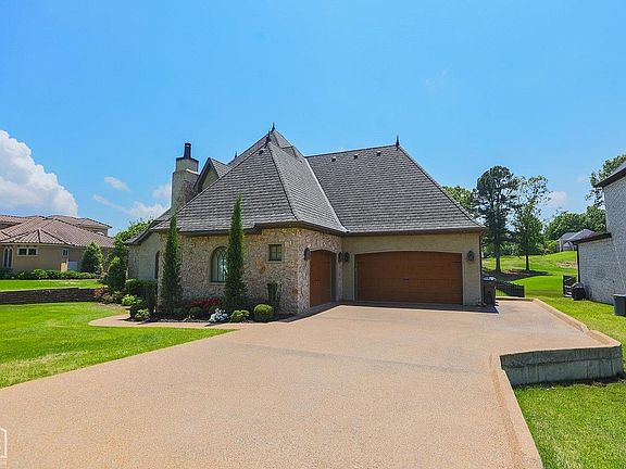 Ridgepointe home on the course built by Tommy Westbrook. Experience timeless craftsmanship and modern luxury in this stunning custom home showcasing exceptional curb appeal and lush landscaping. The exterior's slurry brick and stone design sets the tone for the architectural detail found throughout.    Inside, the main floor offers 3 bedrooms and 2.5 baths, anchored by a soaring 17-foot brick fireplace and vaulted wood ceiling in the living room. The study just off the entry exudes character with shiplap walls, diamond grid ceiling detail, and its own fireplace.    The heart of the home is a showstopping kitchen remodeled by Westbrook Premier Kitchen & Bath, featuring professional-grade appliances, a 48'' dual-fuel range, ice maker, apron sink, zinc mantle-style hood, and a massive island topped with reclaimed white oak.    The primary suite is a retreat of its own with custom ceiling beams, transom-style windows, private patio access, and a spa-inspired bath boasting a large dual-head shower, his and her vanities, and a custom closet with direct laundry access.    Upstairs, find 2 additional bedrooms, a full bath, a loft area, and a versatile bonus roomperfect for guests, hobbies, or a playroom.    Outdoor living is equally impressive, featuring an electric screened porch, outdoor kitchen, custom Ipe deck, and breathtaking golf course views. Every inch of this home has been thoughtfully designed with bespoke materials and timeless finishescreating an unparalleled living experience. Home features updates from Sound Concepts, too.