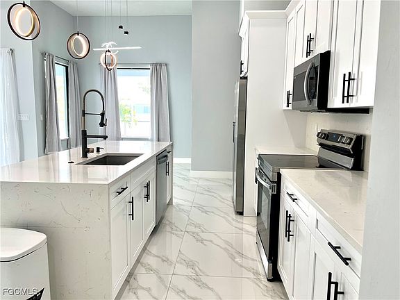 Gorgeous property for sale in sought after South West Cape Coral! LIKE Brand New, Centrally located, minutes to all conveniences, airpot, beaches, restaurants: FL living at its finest! 1,932 SQF of fantastic living space under air! This Newer property has A Marvelous pool with Baja sun ledge for shallow in-water seating and a great size patio, all paved and screen-enclosed, as well as and fully equipped outdoor kitchen. All assessments are in and paid. This property is bright with large windows letting in lots of natural light, open floor plan with split bedrooms, huge master suite with its private beautiful bath, his and hers walk in closets, dual sinks and dual shower-heads. It offers 3 additional bedrooms(or 2 + large office) with walk-in closets and 2 more bathrooms. The Gourmet kitchen has fine appliances that convey, gorgeous light features and top of the line fans and sinks hardware, as well as quality ceramic tiles throughout the entire house. Fully equipped laundry room, in residence. It also features a huge 3 car garage with automatic openers. The yard is nicely landscaped and fenced in all around. Don't miss the opportunity of owning this barely lived-in newer gorgeous home (but without the 3 years builders- wait and aggravation!). Schedule your private viewing today!