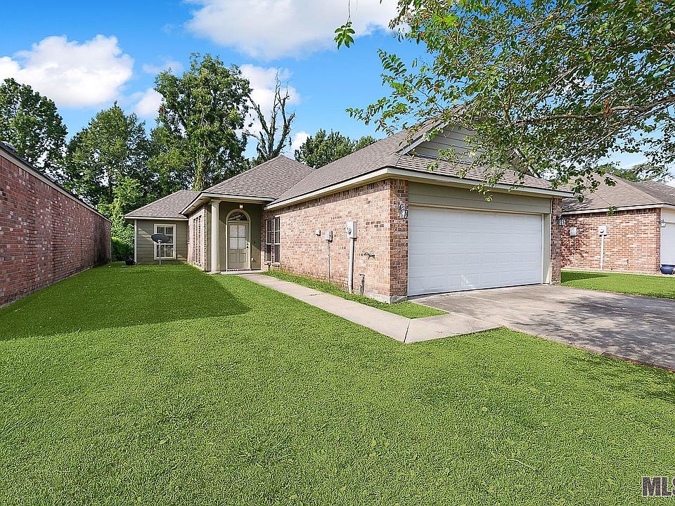 Lake Beau Pre home with 3 bedrooms, 2 spacious bathrooms. Minutes to LSU campus and downtown. Featuring an open floorplan with stained concrete floors in the common areas, hallways and bathrooms and wood laminate in all bedrooms. Great floorplan for sharing with roommates. The large master suite includes a separate shower and spacious walk-in closet. Parking includes an enclosed 2 car garage. Roof is 2 years old. HOA dues include grass cutting of front yards. Washer, dryer and refrigerator to remain at no value.