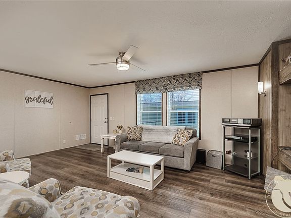Get the feeling of a NEW in this modern home located in a gated community: 3 bedrooms, 2 full bathrooms. The living room has a built-in entertainment center, ceiling fan, and laminate flooring. The kitchen has a 10 ft island, gas range, and farm sink. Expansive dining room space off the kitchen. Huge walk-in pantry space with a coffee bar and lots of storage space. Master bedroom complete with full bathroom, 2 sinks, and a walk-in closet. Separate mudroom and laundry area. Parking spot for 2 cars in the front of the home and additional guest parking. Water, trash, and common area maintenance are included in the $545/mo. lot rent. Convenient location with access to Shiloh.