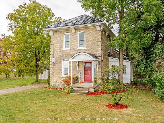 Welcome to 38214 Fingal Line, this beautiful yellow brick farmhouse sitting on a peaceful 0.72-acre lot just outside St. Thomas. This home gives you that country feel while still being close to everything you need. Inside this home, you'll find 3 bedrooms and 2 bathrooms, plus plenty of space on the main floor for family life or entertaining. The upper level has been updated with new flooring and fresh paint, making it feel bright, clean, and move-in ready. You'll also appreciate the metal roof (2021) and new furnace (2025), giving you peace of mind for years to come. The main floor features a bright an spacious living room with a cozy fireplace to enjoy during the winter months. The open concept kitchen and dining room are essential for hosting with family and friends. Outside is where this property truly shines. Backing onto a vast field for ample privacy, enjoy your 0.72 of an acre all year round. The detached garage is perfect for extra storage, hobbies, or even a workshop, and the big backyard is the perfect place to relax, garden, or enjoy the stunning sunsets this property is known for. Don't miss your chance to own this property at an incredible price.