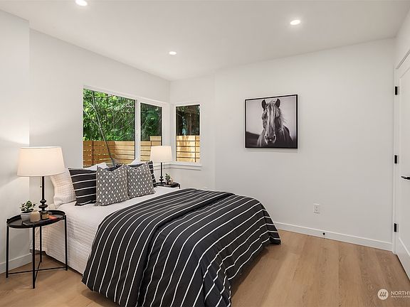 Local builder, Sequoia Construction, presents this new construction cottage in Northeast Seattle's Wedgwood neighborhood. Main floor includes spacious office or bedroom with full bath, plus easily-accessible gear garage with interior and exterior access. Second level offers open concept eat-in kitchen and living room. Upgraded closet systems and thoughtful storage throughout for utmost convenience. Fenced yard with tasteful landscaping and patio offers plenty of room for BBQ & pets. Central location places you near to UW, Seattle Children's, Magnuson Park, Burke-Gilman Trail and U Village, plus charming Wedgwood businesses and restaurants. EV-ready designated off-street parking.