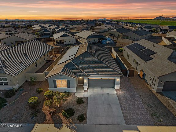 Welcome to this beautifully maintained 2023-built 4 bed, 3 bath home in Buckeye's Estrella Vista community. Tall ceilings, an open layout, and abundant natural light create an inviting atmosphere throughout. The fresh, clean interior feels like a true blank canvas, enhanced by smart home features and a spacious walk-in pantry. Energy-efficient solar panels provide excellent long-term savings. Outside, enjoy a fully finished backyard with pavers, turf, and a paver walkway, plus double gate access rare for new builds. Close to parks, trails, schools, mountain views, and growing shopping and dining options.