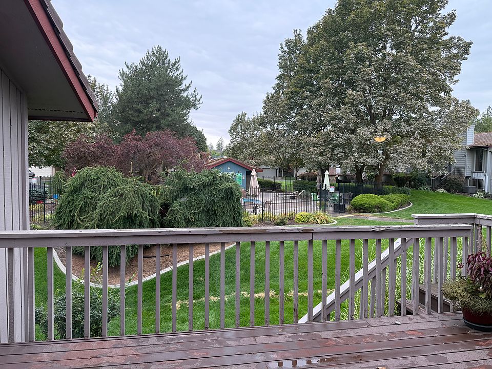 Gated community with a pool. Beautiful remodel, vinyl windows, furnace, pergola, corian countertops, main floor bathroom, interior paint. High ceilings, neutral finishes, central air, and remote controlled awning on private deck that faces the pool. Main floor utilities, 2- car garage. Lower level has a large family room , bedroom and bath. Trader Joe's, Target , and restaurants close by.