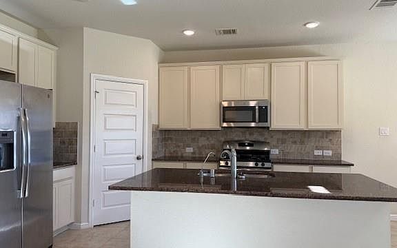 Well maintained home by Taylor Morrison, the Scarlet plan with 4 bedrooms, 3.5 baths, game room and flex room( could be formal dining or study) Enjoy the open concept two-story living area with the kitchen opening to the family room. Kitchen features granite counters, subway tile backsplash, stainless appliances and crisp white cabinets. Spacious master suite downstairs, luxurious bath with his and her vanities, extra large shower and large walk-in closet. Wrought iron staircase leads upstairs to game room and 3 additional bedrooms with 2 full baths. Plenty of room to play in the back yard, as well as relaxing on the huge covered back patio. Washer, dryer and refrigerator are included, and water softener system, which will save on your monthly expenses! Enjoy the parks, pools, pavilions & gym. And abundance of retail shopping & dining close by. Highly acclaimed CISD schools.Internet and security included