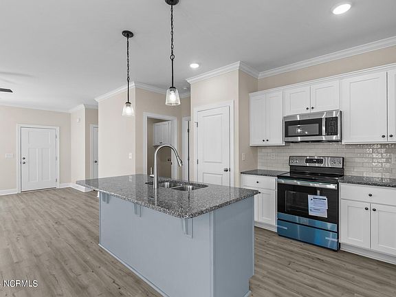 Custom Built RANCH PLAN! Luxury Vinyl HWD Style Flooring Throughout Main Living! Upgraded Lighting & Hardware Throughout! Kit: Granite CTops, Flat Panel Cabinets, Center Island w/Breakfast Bar & Pendant Lights, Tile Backsplash, SS Appls Incl Smooth Top Range, MW & DW! Pantry w/Cstm Shelving! Open to Breakfast Area w/Slider to Rear Grililng Patio! Owner's Suite: Plush Carpet, Crown Molding, Ceiling Fan w/Light & Spacious WIC w/Cstm Wood Shelving! Owner's Bath: Dual Vanity & Walk in Shower! FamRm: Crown Molding, Linear Electric Fireplace w/Shiplap Accent Surround & Stained Mantle & Ceiling Fan! Laundry w/Custom Wall Cabinets!