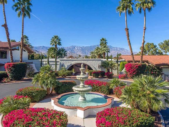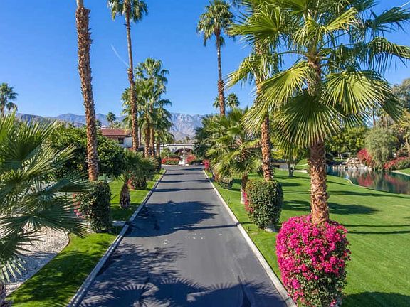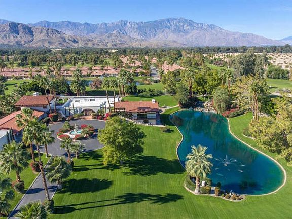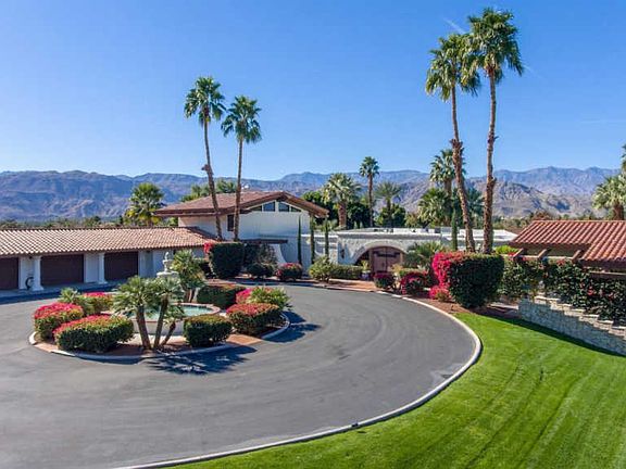 This CAPTIVATING 8100+ sq.ft.,6 BD/6.5 BA Spanish Revival Private ESTATE is situated on 4+ acres in the heart of prestigious Rancho Mirage. From the iron gates and beyond you will be met with a breathtaking resort-like setting including entry fountain,lake with rock waterfall, designated citrus grove,sport court,pool with stunning mountain views and a lamp post-lined walking path. Open the castle-like doors to be greeted with grand traditional Spanish decor which continues throughout, including the formal great room with exposed beam ceiling, formal dining room, gourmet kitchen w/slab granite countertops, open concept family room/dining area, two casitas; one attached w/ full kitchen and one private entrance casita w/kitchenette. The master suite is unique and features a private library,spacious upstairs bedroom with retreat and Juliet balcony overlooking the pool, grounds and views. Estate has been operating as a wedding/events venue. Offered TURNKEY FURNISHED per inventory.