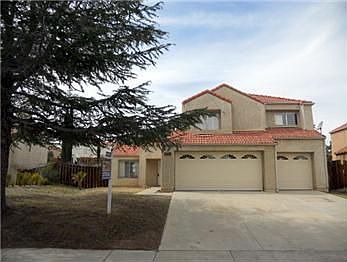 Located in an established neighborhood, this West Palmdale two-story home is close to schools, shopping and the freeway. A mature pine tree shades the front yard. The tiled entry leads to handsome hardwood flooring that flows throughout the living, dining and family rooms accentuated with striking architectural design elements including arched doorways and wall cut outs. The family room features a cozy fireplace and the kitchen includes tile counters, pretty wood cabinetry and a sunny window over the sink. At the top of the wood and glass trimmed staircase, the spacious master bedroom is highlighted with a walk-in closet and private bath with garden tub and shower. Three more sizable bedrooms and another full bath complete the second story. The three-car garage provides plenty of parking and storage and the pool-sized backyard is ready for a personalized landscape design.