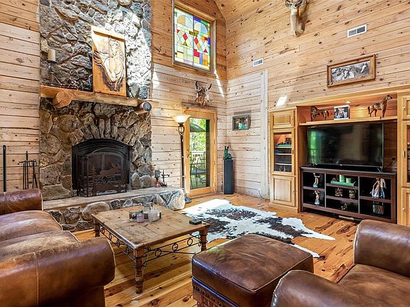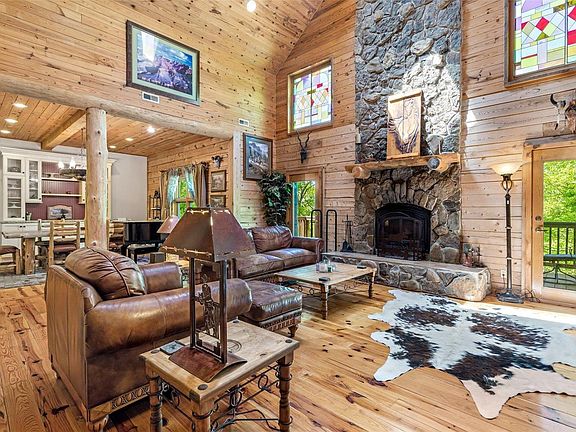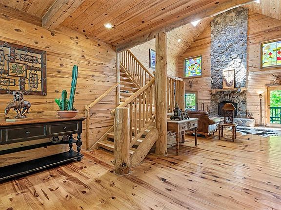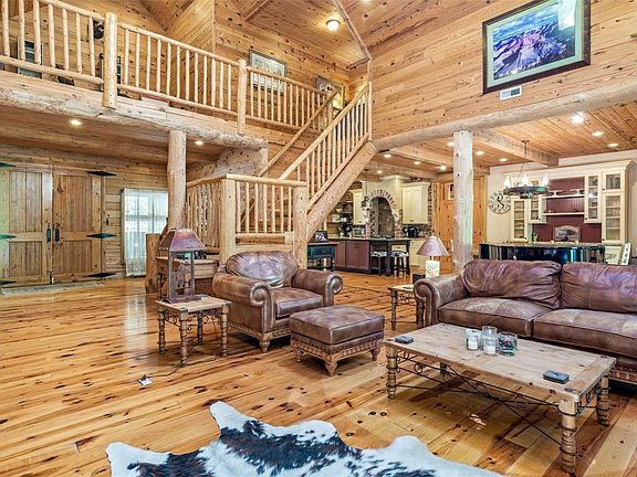 A grand Log Cabin rested on the side of Simms Mountain located 1 hour south of St. Louis offers an enchanting retreat boasting an abundance of rustic charm, from the towering exposed beams to the crackling of the 2 story fireplace, making it the perfect destination for those seeking an idyllic escape from the hustle & bustle of everyday life. As you step inside you are greeted by the rich aroma of the wood features, an open concept living area & a fully equipped kitchen with all the amenities one could desire. Close by, you will find the master suite with a luxurious en suite bathroom featuring an enormous hammered copper soaking tub & separate walk-in shower. Outside, the cabin is surrounded by 10 acres of lush foliage and soaring trees, creating a sense of privacy and seclusion- just minutes from town. The craftsmanship of this home is absolutely incredible. Come experience the magic of this captivating retreat yourself.