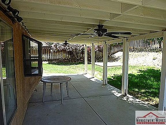 New paint and blinds throughout; formal carpeted living room and separate dining room; new granite countertops in kitchen with garden window and new appliances stove, microwave, and dishwasher and breakfast eating area; tiled kitchen, breakfast area, and den; spacious den with fireplace; master suite with large walk-in closet with shelving; large service porch with storage cabinets; Landscaping covered by landlord. Beautifully landscaped front and rear yards with covered patio and ceiling fans; 3 car garage; convenient to all. Call Management Works for more info at 661-400-1589 Not Section 8 Approved.