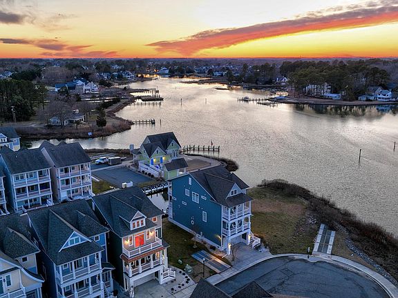 Looking for luxury at the beach? Look at this beautiful, waterfront Schell Brother’s Athena home which is perfectly positioned near a quiet cul-de-sac in the popular Ocean View community of Sunset Harbour! Just 1.5 miles from Bethany Beach and situated on the White Creek Canal where you will experience incredible sunsets and spectacular sweeping water views! The character and charm of this four-bedroom, five bath home is showcased by landscaped grounds, multiple balconies in the front and back, and an attractive coastal style exterior. Water access is easy, just step out your back door to your own private boat dock where you can imagine the family boating trips, kayaking, jet skiing, swimming, crabbing, and fun filled summer days! The interior living space has been thoughtfully designed in this three-story home accessible by an elevator to all levels. The top-level provides a stellar vantage point of the surrounding scenery, water and coastal habitat views from a private screened porch overlooking the canal. Enjoy an open concept layout combining the dining area, living room and a spacious kitchen which is ideal for everyday living and seamless entertaining. The gourmet kitchen is equipped with granite countertops, 42” inch warm wood toned cabinets, under counter lighting, stainless steel appliances, a gas range and a central entertainer’s island with a breakfast bar for casual meals. Adjacent to the kitchen is a lovely guest room with an ensuite bath and a private balcony offering fabulous water views. Take the turned-staircase downstairs to a spacious home office area embellished by a soaring vaulted ceiling, an impressive feature ceiling fan and custom built-ins. The second level hosts three additional bedrooms, two with water view balconies, including the primary bedroom with an ensuite bath. The lower level of the home offers more living and entertaining options with a spacious family room, full bath and laundry room. Transition through transom glass sliding doors to an expansive wrap-around deck complete with a retractable awning, outdoor shower and access to the heat-resistant dock. This exceptional home also features a north-side storm shutter and a security system. Residents of Sunset Harbour have access to a beautiful community pool and clubhouse, complete with fishing/crabbing pier and boat ramp. A boater’s paradise with easy access to the bay and ocean. Enjoy a short bike ride or drive to Bethany Beach, Delaware’s State Park trails and a fun boat ride to sand bars and restaurants on the intercoastal waterway from Lewes down to Ocean City – coastal living at its best!