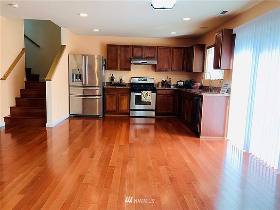 Ready to Move-in! Build 2005- 1830 sf. Large 3 bdrm with a Loft - 2.5 Bath. Level lot size of 3920 sf. Functional, cozy, open floor plan w/ original upgraded kitchen cabinetry, hardwood on main-flr, hallway upper flr, stairway, gas FRPL in Living rm. All appliances stay, 2 sheds stay + power hookup, A/C & low maintenance backyard w/ huge patio, very nice setting w/trellis, fruit trees, front-yard sprinkle system. Easy access to Mill Creek Town Center, Boeing, Freeway I-5, Private community park.