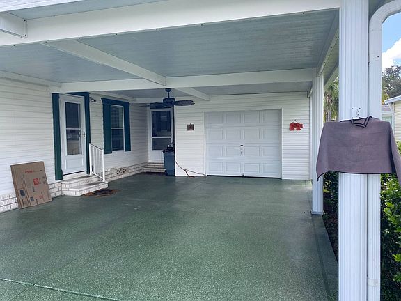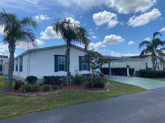 This floor plan is one of the best in a 2 bedroom/2 bathroom home. The bedrooms are on opposite ends of the home. The 12 x 15 Master Bedroom has a walk-in closet with an 8 x 12 double sink Master bathroom which features a walk-in shower. The 12 x 13 second bedroom is also a great size with it's own walk-in closet. The second bathroom is right next door! This home has a nice open concept with a 13 x 15 dining area next to a 13 x 17.5 family room. Don't forget the kitchen, which measures 12 x 21 with an eating area. The kitchen has been updated with a new refrigerator, sink, and faucet. There are 2 screened-in porches, side by side. The first one is a 12 x 20 which is lots of room to entertain your guests. The second screened in porch measures 8 x 20 area which can be used for a dog area, or some of your favorite plants. The 20 x 45 driveway can easily park four cars! It also features a 20 x 25 carport and a 14 x 11 attached shed. No worries on the roof which is less than year old. Here's a bonus! This home comes fully furnished, and all the appliances stay making your move-in very easy. Please check out all the pictures. Make YOUR appointment today! Monthly Lot is $805 Pass Thru Tax $83.00 Garbage $15.00. Southport Springs Golf and Country Club (SPS) is a PREMIER 55+ community with superb amenities including a beautiful Club House with ballroom/stage for banquets and dances, fitness center, card room, a restaurant/tavern with a fully stocked bar. Activities include golf at the 18-hole golf course, tennis, pickleball, horseshoes, bocce, shuffleboard, power walking, bingo, potlucks, pool tables, and line dancing. You might prefer a dip in the heated swimming pool or relax in the two hot tubs. SPS has over 500 homes and is pet-friendly with a place to park your RV or trailer. SPS is less than two miles from shopping, medical facilities, dining, and houses of worship. Only 45 minutes from downtown Tampa and the Tampa International Airport. There are many nearby attractions like Busch Gardens, many beaches along the Gulf of Mexico. Go see the Tampa Bay Buccaneers, TB Lightning, TB Rays, Orlando Magic, as well as spring training with the New York Yankees. Family fun is also readily available. The excitement of Orlando's theme parks includes Walt Disney World, Epcot Center, Universal Studios, and SeaWorld which are just 60 miles away. There is truly something for everyone in this friendly and wonderfully maintained Florida community.