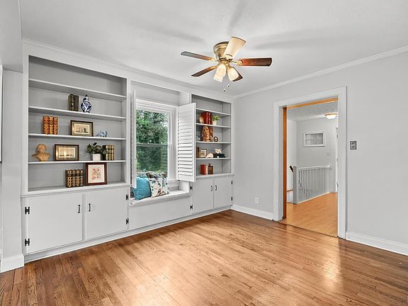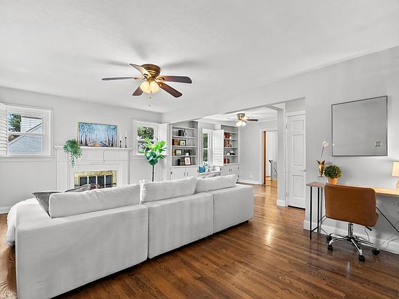 This bright and beautifully updated home in Fort Hill offers over 1.3 acres on a double lot and an easy, comfortable flow sprawling over 2,600 sq ft. The main level features a sun-filled great room with a gas fireplace, office or sitting room with built in shelving, a kitchen with white cabinetry, large island, quartz countertops, and two pantries with a dining room, and a relaxing sunroom off the garage. The main-level owner's suite includes a large walk-in closet, en-suite bath with double vanities, and a new sliding door with backyard access. A partially finished walk-out basement with a second gas fireplace and bar adds ideal space for a den. Recent updates include fresh paint, 2019 roof and water heater, 2017 heat pump, new windows, driveway, whole-home generator, garage door, porch awning, Reme Halo air purifier, and shutters. The fenced, landscaped yard is perfect for play and privacy. Conveniently located minutes from Downtown Lynchburg, shopping, parks, and Liberty University.