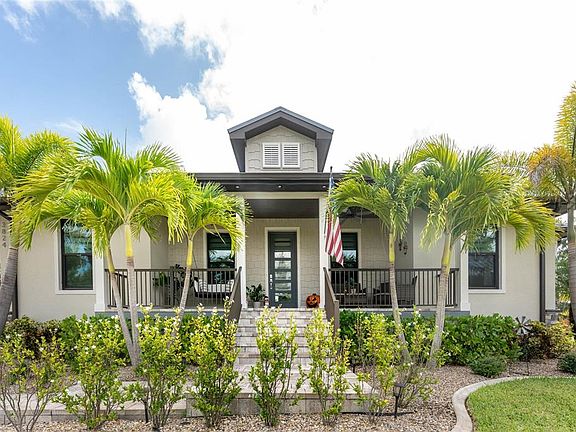Spectacular waterfront custom home on TWO LOTS - the owner is a custom builder and this home offers stunning design features throughout. This light and bright home offers 3 Bedrooms Plus Office, 3 full bathrooms and attached 6+ Car Garage. There are two garage doors - one is 12 feet high, the other 8 feet high. There is an open and split bedroom floor plan with Great Room, separate Dining Room, well appointed Kitchen, Inside Laundry. The Great Room has coffered ceilings and oversized sliding glass doors that lead to the lanai. The Great Room opens to the Dining Room and Kitchen. The Kitchen features quartz counters, wood cabinets with crown molding, tile backsplash, breakfast bar that seats four, dining area and stainless appliances. Appliances include built in microwave, built in oven, cooktop, dishwasher and French door refrigerator. The Inside Laundry offers a front loading washer and dryer, white cabinets with lots of storage space and sink. The spacious Master Bedroom suite features oversized sliding glass doors to the lanai, transom windows, huge walk in closet and private bathroom with walk in shower with stunning tile work, bathtub, his and hers sinks, wood cabinets and quartz counters. There are two generous sized guest bedrooms and two guest bathrooms, one with a walk in shower, the other with a tub/shower combo and one is a Pool Bath. Sliding glass doors lead to the screened lanai with outdoor kitchen (two grills- one is flat griddle), heated inground saltwater pool with attached inground spa, waterfall and Pentair control system, large covered area and plenty of deck for sunbathing. Continue to the waterfront with **140 foot concrete seawall **, 35 foot trex dock and 18x25 boathouse, 10,000 lb boat lift with remote. Boating access to Charlotte Harbor and on to the Gulf of Mexico. Other features include a front porch, high quality metal roof, whole house generator, irrigation system paver driveway and walkway, 8 foot doors,wood look tile floors throughout the house. The front porch swing conveys with the house. This home is 5 minutes to Golf and historic downtown Punta Gorda shopping, dining, medical care, waterfront parks, walking and biking paths, art galleries, Charlotte Harbor Event Center, Fishermen's Village, weekend farmer and artisan markets, weekend events and much more.