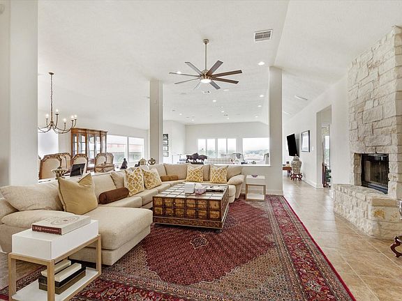 wooded areas for the abundant wildlife. Other features include multiple ponds, 5 water wells, barns and the Mill Creek. At the heart of the property, you will find the 8,000 sq. ft. home with 6 bedrooms and 6.5 baths. The open concept floor plan flows from the kitchen to the living with a wet bar and through the French doors that open to the covered outdoor kitchen. A hallway leads you to a private winged main bedroom, bath and office. Improvements include pool, spa, large outdoor kitchen/seating area, 3 car attached garage, detached 4 bay garage, and entertainment facility that would serve purpose to many uses. All amenities of the home are easily reached by connected sidewalks. A Historical home also sits on the property that is perfect for a ranch hand or guests.