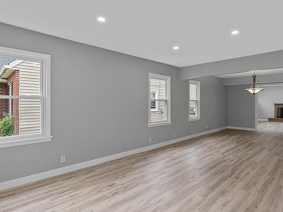 Charming brick Cape Cod in desirable Grasslyn Manor! This move-in ready home offers 3 spacious bedrooms, including a main floor master, 2 full baths, and generous living space with a bright living room, formal dining room, and cozy family room--perfect for gatherings and everyday comfort. A beautifully updated kitchen features soft-close cabinets, quartz counters, tiled backsplash, and new stainless steel appliances. Fresh paint inside and out, new flooring throughout, and modernized bathrooms add style and ease. Recent updates include plumbing, electrical, drain tile with sump pump, vinyl windows, brand new A/C, and a new rubber roof. Detached garage, extra parking slab, patio, and fenced yard add convenience. With thoughtful updates and classic charm, this home is truly move-in ready