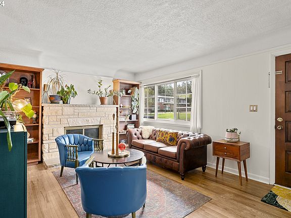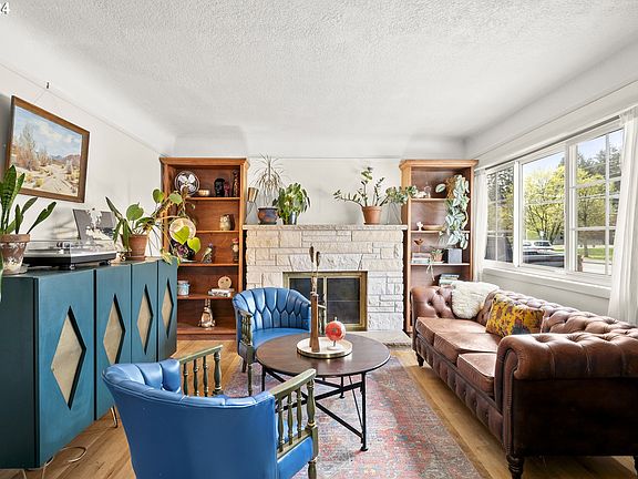 Step into this stylish sanctuary nestled in the heart of the Powellhurst-Gilbert neighborhood. As you enter, you can feel the warmth emanating from the wood-burning brick fireplace, setting the stage for countless cozy moments. The main level sings with gleaming hardwood floors. The culinary kitchen is adorned with stunning wallpaper by the renowned Kate Blairstone, accentuated by a melody of natural light in the sunny nook. Yet the real crescendo awaits downstairs in the finished basement, where a spacious den/TV room and versatile flex rooms become your blank canvas, providing endless possibilities for customization. The grand finale is the oversized backyard oasis! Picture yourself lounging in the covered outdoor living room or gathered with friends around the stone fire pit in music and song under twilit skies. With ample space for all your outdoor activities and fully fenced for privacy, it's the perfect spot to relax and a magical setting for unforgettable evenings. With a newer roof, gutters, A/C, furnace, Milgard windows, newer main line & Pex plumbing throughout, this home is fully updated and ready for new memories! [Home Energy Score = 4. HES Report at https://rpt.greenbuildingregistry.com/hes/OR10226299]
