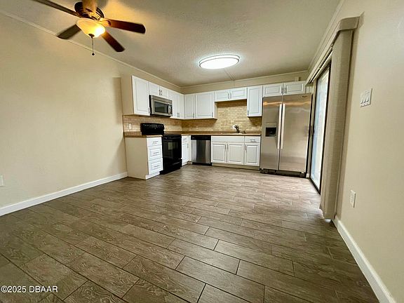 Just two blocks from the beach! This charming New Smyrna Beach townhome offers the perfect blend of comfort and coastal living. The spacious open-concept downstairs features stylish wood-look tile flooring, a modern kitchen with sleek cabinetry, Whirlpool appliances, and a convenient half bath.