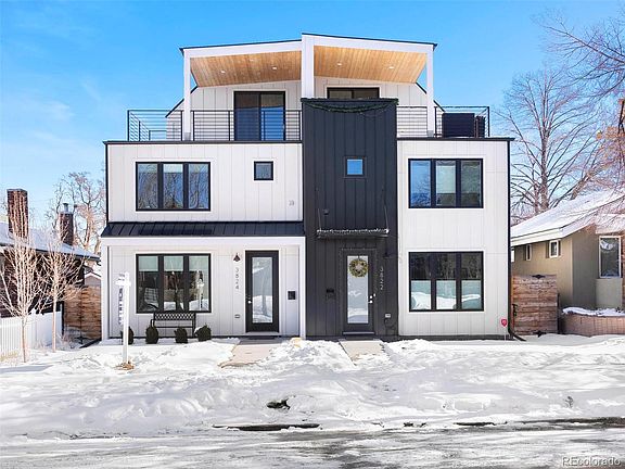 Chic and sleek 1/2 duplex in the desirable Sunnyside neighborhood! Open, airy, and sleek with timeless finishes this home, built in 2019 checks all the boxes. Features include a spacious rooftop deck, gourmet kitchen + pantry, a gracious primary suite, gas fireplace, back patio, small yard, and hardwood floors. Appointed with a designer tile backsplash the open kitchen and great room highlights include a 13’ island, Quartz stone countertops, stainless steel appliances(KitchenAid), contemporary light fixtures and a gas log fireplace. Sliding door windows help to connect the backyard entertaining space with the indoors for easy kitchen access. Upstairs, a stunning primary suite has tons of natural light, oversized shower, walk-in closet & dual vanity. Two more bedrooms, a full bathroom & laundry room are just down the hall. The third floor is perfect for entertaining with a multi use flex space, 1/2 bathroom, wet bar & sliding doors opening up to covered rooftop deck. Through the backyard, sits an oversized 2 car garage with an ample loft providing additional storage. With incomparable proximity to local favorites, this sophisticated modern duplex provides easy access to some of Northwest Denver’s most coveted restaurants, bistros, and bars : Uncle, Bar Dough, Señor Bear, Wildflower, the Wolfe’s Tailor, Common Grounds, The Cherry Bean, Recess and many more! This stunning duplex will not disappoint!