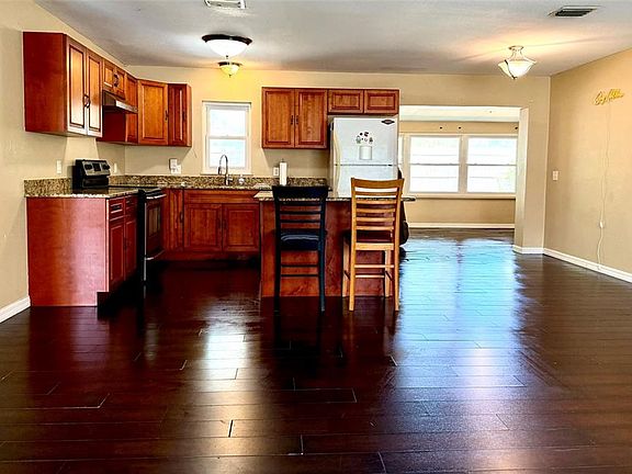 Move-In Ready 3 Bedroom, 2 Bath Block Home on Corner Lot in Zephyrhills! This home sits on a spacious corner lot in the heart of Zephyrhills and features a split bedroom layout with an open floor plan, offering both comfort and functionality. The interior includes laminate and tile flooring thoughout-easy to clean and great for everyday living. The kitchen is open to the main living area and includes granite countertops and a large island, making it a great space for cooking and gathering. Both bathrooms feature ceramic tile backsplashes and neutral tones that work with any style. A bright Florida room at the back of the home is lined with windows and overlooks the fully fenced backyard. This home is in the CRA district, offering $5000 to owner occupants! Let me know if you'd like to know more information on how the CRA works. Waher/Dryer Do NOT Convey with Sale.