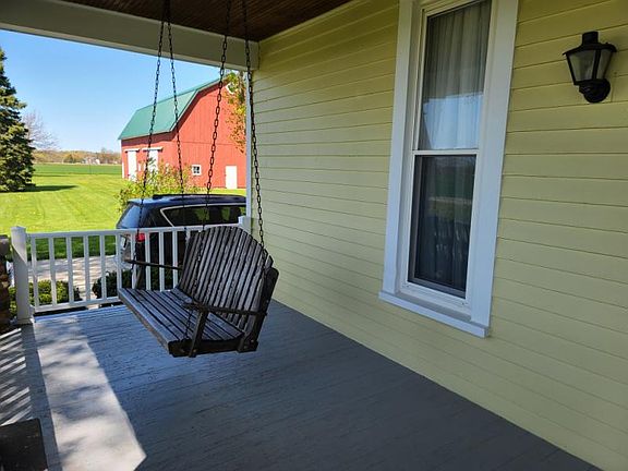 If you are looking for country living, you can not beat this location and setting ! You can almost see the cattle or horses grazing in the pasture and the kids sledding down Schmitt's hill. A perfect location and home to raise a family. This turn of the century farm house was gutted and remodeled in the 1970's from top to bottom, top notch quality, the 10' ceilings in the dining room, living room and master bedroom were retained along with some woodwork and doors. The open kitchen and dinette area is inviting, plenty of kitchen cupboards with pull outs, island and pantry. Spacious 1st floor laundry and sewing room. The built-in bookshelves and bay window in the living room are a special touch. The master bedroom has a private bath and walk-in closet. 2nd floor contains 4 bedrooms with custom closets and a hallway bath. Lots of storage throughout. The basement recreation room, full bath and exterior entrance would be great for the kids and entertainment. Awesome views, watch the sun rise and the deer grazing from the back deck, watch the sun set from the front porch swing. Recent updates: Steel roof on house and barn, heating boiler, septic system, exterior paint and more. The 28' x 32' attached garage has plenty of space for 2 cars and lawn equipment. Never worry about losing electricity and heat with the whole house automatic Generac generator. The big barn would make great storage, cattle or horse housing, contains hay and straw lofts and even the old dairy stalls. So much history and so much to offer, call today for your private showing.
