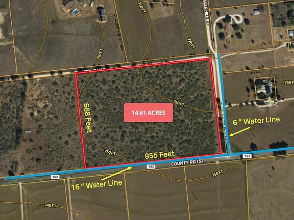 Excellent opportunity to purchase 14.61 acres of flat land without flood plain, power lines, gas lines or any known easements, bordered on three sides by roads. CR 152 is on the southern boundary and runs 940 feet with a 16-inch water line from Jonah Water supply. PEC Power is available as well. Grove Lane is a dirt road that borders the east and north boundaries, providing multiple access points. A 6-inch water line runs under Grove Lane on the east boundary. The Jonah Water Development Packet is attached as part of the documents.