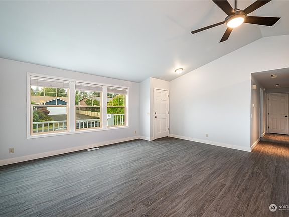 Welcome to this light & bright single-level rambler centrally located in Bellingham! Situated in a quiet & calm neighborhood near Barkley Village, downtown & HWY 542 to Mt. Baker! This corner lot home has a fully fenced, full sun yard with welcoming covered back patio, fire pit and outdoor kitchen area! Home has brand-new floors & paint and is move-in ready! 3 bedrooms with a primary with en-suite bathroom. Spacious & deep garage is great for parking + tools, toys & storage. More storage available with the shed in the backyard. Additional parking available for cars, RVs or boats! Forced air heating throughout the home keeps heat up and bills down! Make this house your home today!