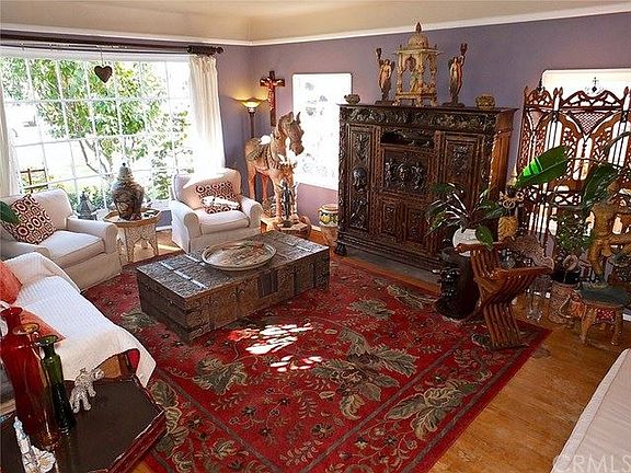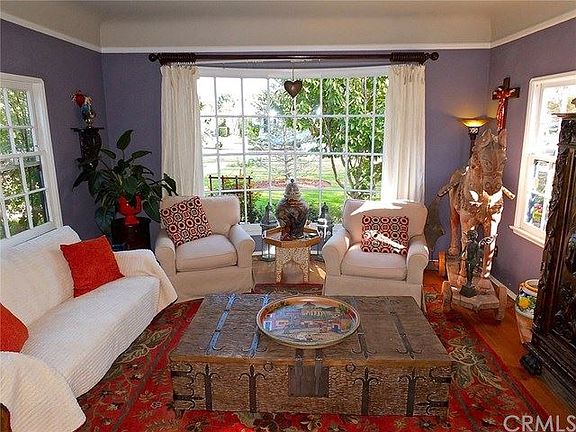 Classic Bixby Knolls Ranch style home on a quaint cul-de-sac. The home features a large inviting front porch, formal living room with bowed window , dining room with views of the lush backyard, original arge country style kitchen with breakfast nook, two bedrooms and a bath featuring original tiles and large soaking tub and separate shower on one end of home with a 3/4 bath with original tiles and family room with wood burning fireplace is currently used as a bedroom, and basement large enough for wine cellar. There is also a detached guest house with kitchenette and 3/4 bath attached to the three car garage. Newer roof, newer HVAC, 220 upgraded electrical, copper plumbing to the main, gas line replaced. This special home is awaiting your personal touches.