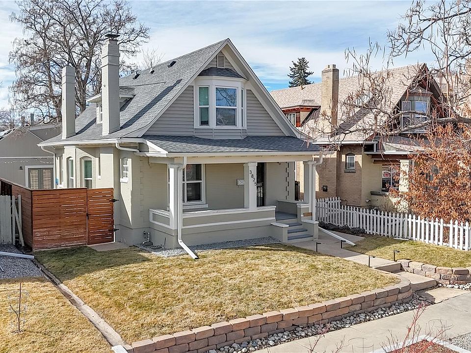 PRICE ADJUSTMENT & A CONCESSION! Classic, timeless Victorian charm meets modern versatility in Sunnyside. Welcome to this well-appointed residence with ADU over the garage perfect for guests or short-term rental possibilities. Newer roof and exterior paint are only the beginning you enter an open floorplan with freshly refinished hardwoods that seamlessly brings together a cozy living room, bright dining room and kitchen complete with granite counters, stainless appliances, two-tone cabinetry and glass tile backsplash. Main floor bedroom suite can be used as primary or for guests. Upstairs a pair of guest bedrooms joined by updated bathroom with beautiful tilework, including floor inlay. The back bedroom features a private deck for morning coffee or a Colorado sunset. The finished basement offers flexibility for movie night or guests with its own 3/4 bathroom. Comfortable 2-car garage with leased Telsa solar panels, and ADU above. Attention to detail is the key with wrought-iron staircase, Trex deck, thoughtful fabric privacy panel, kitchenette and bathroom. The yard is an entertainer's dream with firepit, dedicated dining area, string lights, theater screen for movie night, and privacy fence with horizontal paneling. Perfectly located at the doorstep to LoHi and Denver. Just moments to retail and dining, and a short distance from I-25 and LoDo. Welcome home!!