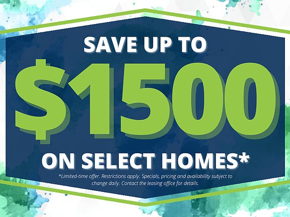- Special offer! Save up to $1500 on select homes! *Limited-time offer. Restrictions apply. Specials, pricing and availability subject to change daily. Contact the leasing office for details.