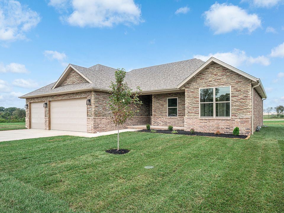 Just completed -- brand-new construction, ready for its first owner!  This stunning all-brick home with stone accents offers that hard-to-find 4-bedroom floor plan with approximately 1,845 sq. ft. of living space. Inside, you'll appreciate not only the spacious rooms but also the generous storage throughout--because you can never have too much of that!  The Kitchen and Baths showcase elegant quartz countertops, while oak engineered hardwood flooring flows seamlessly through the home, complemented by tile in the Bathrooms and Laundry. The Living Room features a beamed cathedral ceiling and a striking linear fireplace complete with timer, blower, and temperature control. The Kitchen is a dream with abundant soft-close cabinetry & drawers topped off by a walk-in Pantry.  You'll love the 5-burner Gas Range with Electric Oven with Air Fryer capabilities.  A 3-car Garage ensures plenty of room for vehicles and storage. Outside, the fully sodded yard comes complete with an in-ground sprinkler system in both front and back. Efficiency is built in with a hi-efficiency HVAC system.  Located among other quality homes, this property carries a Springfield address while being just outside city limits, offering the benefit of Republic Schools. With easy access to the West Bypass, you're just minutes from I-44, Republic, James River Freeway, and local exciting amenities. You'll even have the option of joining the nearby Marlborough Manor pool.  A beautiful blend of quality, convenience, and comfort--this home truly checks all the boxes.