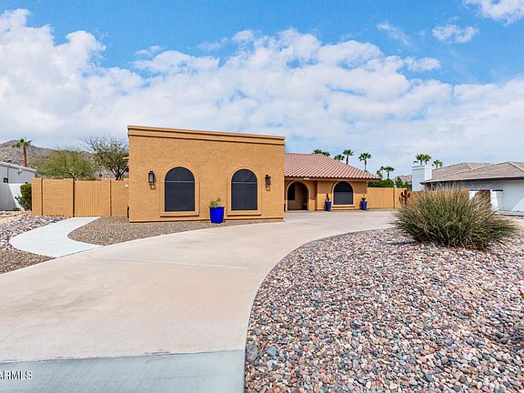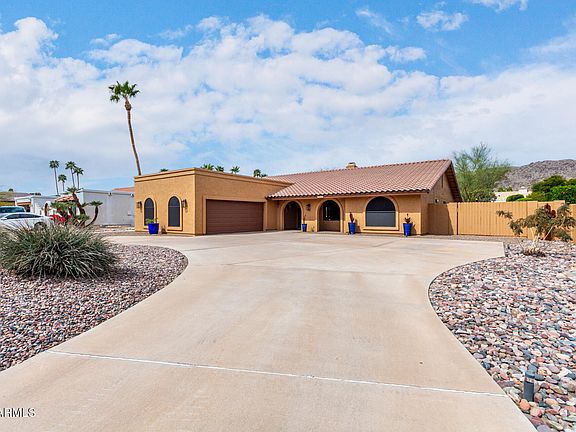 Located in sought-after Equestrian Estates, surrounded by scenic South Mountain Park Preserve, this well-maintained home offers thoughtful layout & modern updates. Circular driveway leads to a side-entry two-car garage, while covered front entrance provides welcoming first impression. Inside, split floorplan with 3 bedrooms, 2 bathrooms, spacious primary suite has spa-like bathroom. Open living / family room, with fireplace, connects with formal dining area, creating functional space for everyday living & entertaining. Spacious eat-in kitchen features ample storage & granite countertops. French doors open to covered patio, Pool cabana with storage, overlooks the custom pool. Tiered backyard, featuring artificial turf & natural rock adds to the resort-like feel. Oversized 17982 sq ft lot