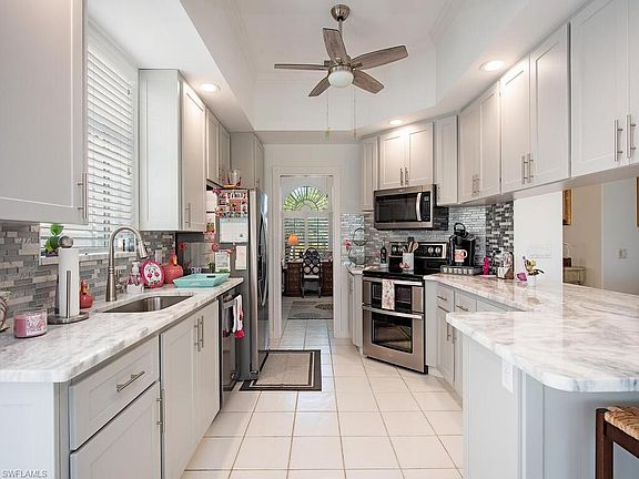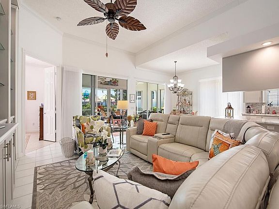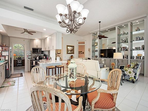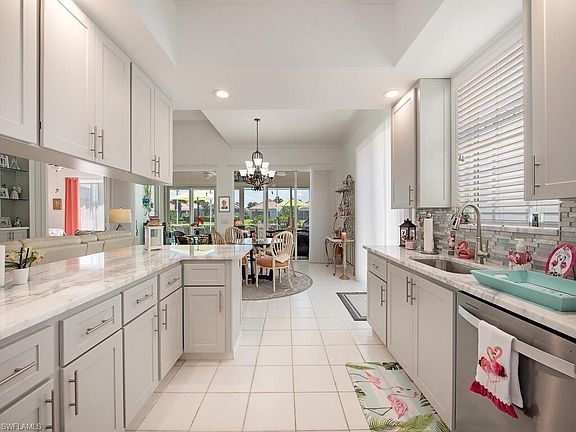 This beautiful Oakmont floorplan in Village Walk features 3 bedrooms, den and 3 bathrooms with a panoramic view of the pool and wide lake. Many upgrades in this home include a New Roof in 2023; New Pool Heater, New HVAC system, New countertops throughout in 2022; New Whirlpool stainless kitchen appliances in 2021 and New water heater in 2020. Entertaining in this home is a joy with 13-foot ceilings infused with natural light in the living room and a natural flow from the home to the covered lanai and pool. Other main features include hurricane protection on all windows and doors, beautiful tile floors throughout, plantation shutters in the den., his & her bathrooms in the master bedroom suite and built-ins in all closets and in the two car garage. This home is very well maintained! Village Walk is a secure 24-hour guard-gated community that offers 3 swimming pools, a restaurant, (6) Har-Tru tennis courts, state-of-the-art fitness center, library; walkways and bicycle lanes. Five miles to the beach and an easy drive to Mercato and other Naples attractions.