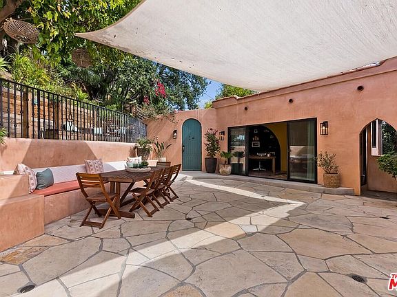 Behind a private arched entry, this discreet hillside compound by Vidal Design Collaborative blends Spanish Revival charm with refined modern updates. Fully renovated in 2021, the home layers art deco accents with contemporary comforts, creating a retreat that is both stylish and highly functional. An expansive multi-level courtyard with fire pit sets the tone for year-round entertaining, while a converted garage provides the ideal setting for a home office, studio, or gym. Inside, the main level features wide-plank European oak floors, curated lighting, and a custom kitchen with premium appliances and tailored finishes. Large windows frame hillside views, while a flexible bedroom or office with en-suite bath adds convenience and versatility. The lower level is anchored by a serene primary suite with bespoke cabinetry and a spa-like bath appointed with heated floors, a cast-iron soaking tub, and designer fixtures, complemented by a second en-suite bedroom for family or guests. On the garden level, a fully permitted ADU with private entrance provides rare flexibility; most recently generating $3,500 per month in income, it can serve equally well as a rental, guest quarters, or multi-generational living space. Outdoors, a landscaped backyard and terraced areas offer privacy and calm, perfect for gardening, dining, or simply enjoying nature. Tucked in Franklin Hills between Silver Lake and Los Feliz, this residence combines architectural pedigree, flexible living, and a true sense of privacy in one of Los Angeles' most sought-after enclaves.