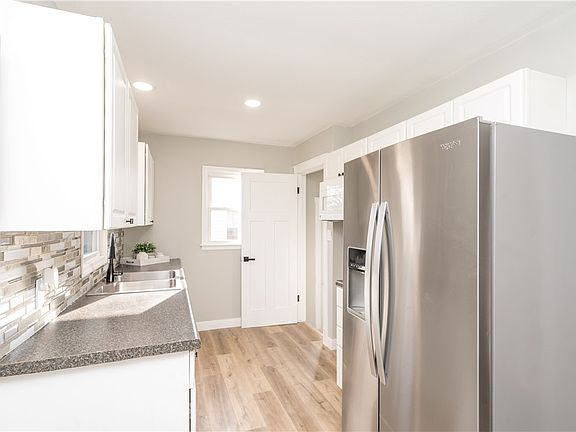 Step into a tastefully updated ranch home, where LVP flooring seamlessly and fresh paint throughout, creating a stylish and low-maintenance living space. The updated kitchen features white cabinets, tiled backsplash, and canned lighting that accentuates the design. The completely remodeled bathroom showcases a meticulously tiled shower, convenient in-shower shelving, and a touch LED mirror, offering functionality with a modern feel. Both bedrooms on the main level are sizable, and bring in plenty of natural light. Walk down to the finished basements to an additional flex space, while taking advantage of the additional storage your basement has to offer. Take a look outside into your fenced-in backyard, providing a private and secure area for enjoying time outdoors. Have peace of mind knowing the bigger ticket items are done for you, including a new furnace and ventilation system, new interior and exterior doors, new lighting and electrical, and a new sewer line to the main. This home blends modern updates with timeless charm, offering a blend of comfort and style for your new home. Check it out!