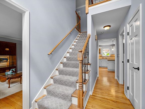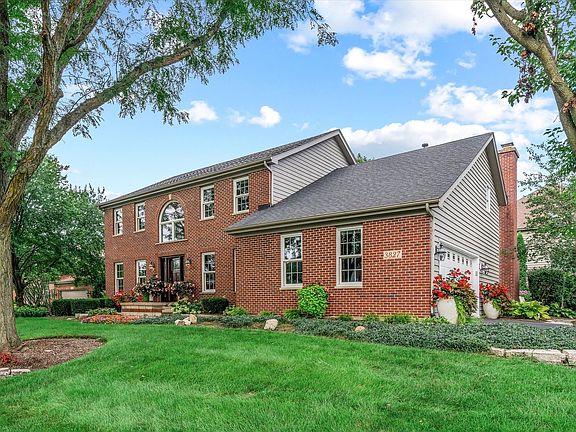 Welcome to your dream home in Naperville's sought-after Ashbury Swim Club community, perfectly situated on a premium cul-de-sac! This stately residence offers incredible curb appeal with a cozy front sitting patio, side-load garage with epoxy floors and wainscoting, and beautiful landscaping. Inside, the home has been thoughtfully updated from top to bottom, blending timeless style with modern finishes. A dramatic two-story foyer with wrought iron balusters and gleaming hardwood floors sets the tone. Hardwood continues through the spacious living and dining rooms, the updated kitchen, and the dinette. The dining room is extra wide, with space for both table and buffet, and features a lovely inset ceiling and matching hardwood design. Freshly painted in modern, neutral colors, the home feels light and welcoming throughout. The kitchen is a true centerpiece-featuring white cabinetry, stainless steel appliances, granite countertops, a large center island, and an enviable walk-in pantry. The dinette opens to a deck and large paver patio, perfect for outdoor entertaining or relaxation. The family room shines with a vaulted ceiling, skylights, and a striking floor-to-ceiling brick fireplace. An alcove with built-in cabinets, shelving, and a wet bar creates an ideal entertaining center. A main-floor office adds flexibility for today's lifestyle. Upstairs, the primary suite offers a vaulted ceiling, a generous walk-in closet, and a completely remodeled spa-like bath with dual sinks, plenty of storage, and a massive glass-framed walk-in shower. Three additional bedrooms are conveniently located near the fully remodeled hall bath. This home has been thoughtfully updated and meticulously maintained, featuring front windows including the foyer palladium window (2017), roof (2019), skylights (2019), east-side siding (2019), and exterior paint (2019). Interior updates include fresh paint (2019), carpet (2018), completely remodeled primary bath (2018) and upstairs hall bath (2018), plus a water softener (2018). The home also offers a rear paver patio (2017), gas line extended to the deck (2017), front walk and patio (2010), driveway (2008), front door (2013), garage door (2021) with LiftMaster opener (2011), garage floor epoxy (2015), and a rear storm door (2022). Mechanical updates include furnace and air conditioner (2012) and a new water heater (2024). The kitchen boasts stainless steel appliances (2012), including a gas stove with double oven-lower oven with conventional and convection options-microwave, dishwasher, and refrigerator. Enjoy all the perks of this pool and clubhouse community-including membership at the Ashbury Swim Club-while being just a few blocks from Patterson Elementary, close to shopping, I-55, and within acclaimed District 204 schools, including Neuqua Valley High School.