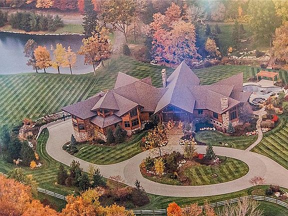 Custom built rustic style equine estate was constructed in Montana using reclaimed blue spruce timbers from forest fires. The home offers striking architectural details encompassing 17 rooms, consisting of 5 bedrooms, 8 bathrooms and 5 fireplaces with lower level saloon style bar, wine room, second kitchen, game room, exercise room, dog kennel, 5 car garage, workshop and elevator. There is a 1,950 SF 5 stall barn with running water, heat and 2 air conditioned rooms. Completing the grounds are a horse riding arena, spring fed 3.5 ac stocked lake, club house and pool with spa, a 2,000 SF deck, lifetime warrantied concrete roof, in addition to heated house floors, garage and driveway.