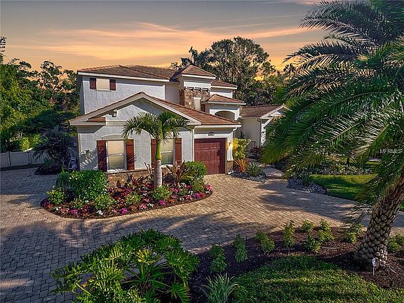 So many reasons to love this West of Trail home in highly desirable San Remo Estates! LOCATION...on the mainland beside the North Bridge to Siesta Key, 10 minutes from downtown Sarasota or Siesta Key beaches and walking distance to Southside Village, Westfield Siesta Key Mall, and numerous cafes, shops and restaurants. STYLED FOR ELEGANCE AND FUNCTION...Allegra Homes spacious St. Joseph model combines great design and luxury features in a 2-story split plan that includes 20' coffered ceiling in the great room, rich travertine floors, wall to wall sliding doors, chefs kitchen with gas cooktop and island seating for 4, solid wood/glass cabinetry and granite counters. Zoned home automation system controls audio visual entertainment, security and lighting. First floor master retreat has private access to the lanai and includes ensuite with garden tub and walk in shower, his/her closets and separate paneled office. EASY LIVING... integrated great room, kitchen and dining alcove open to oversized lanai with outdoor kitchen, covered dining area, heated pool/spa, fireplace and custom privacy landscaping. Game room and large second floor bonus room expand living area. SPECIAL NEIGHBORHOOD FEATURES...Deeded water access, ideal for launching kayaks/canoes on Roberts Bay; community of 67 unique home sites features tree-lined streets and sidewalks ideal for walking and visiting with neighbors.