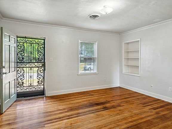 Charming cottage-style home located in a well-established neighborhood. This delightful property features beautiful real hardwood floors and a modernized kitchen. The open floor plan is enhanced by removed walls, creating a spacious feel, while classic details like arched doorways, a built-in corner cabinet in the dining room, and built-in bookshelves add character. Easy to show and ideal as a starter home or investment property. Surrounded by wood fence; storage building in backyard.