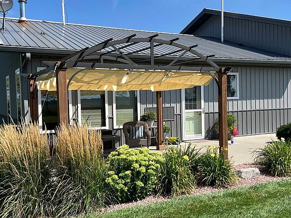 For Sale - Rustic Modern Retreat on 6 Acres Discover the perfect blend of rustic charm and modern comfort in this 1,300 sq. ft. open-concept home, paired with an equally large garage for endless possibilities. Built in 2015, this one-level home is nestled on six scenic acres surrounded by mature trees, grassland, and growing crops-offering a true hunter's paradise. Step inside to find custom kitchen cabinetry, beautiful flooring, and warm, rustic-style walls that create an inviting atmosphere. The spacious living room provides stunning views of local wildlife, while the outdoor pergola is ideal for relaxing and soaking in the peaceful setting. The oversized garage offers ample space for vehicles, storage, hobbies, or even a home gym. Outdoors, you'll appreciate the irrigated yard with sprinklers, lush landscaping, and room to expand with additional acres available. Located just under a mile from a blacktop road and only minutes from the Missouri River, this property combines tranquility with convenience. Whether you're looking to enjoy fishing, hunting, or simply a serene lifestyle, this home offers it all.