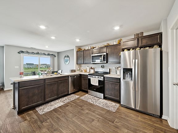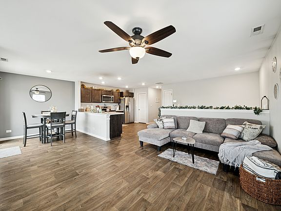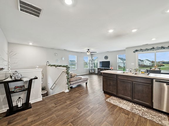 Hard to find Madison end unit in the popular Tall Oaks community! This townhome feels barley lived in and offers a fresh, modern vibe throughout. With 3 bedrooms and 2 full baths, the layout is designed for easy, comfortable living. The main level features a bright, airy floor plan centered around a stunning kitchen-complete with stainless steel appliances, white cabinetry, large counter tops and a walk in pantry. The kitchen opens to a dining area and a spacious living room lined with windows, plus access to a private balcony that brings in even more natural light. It's an ideal setup for hosting friends or enjoying quiet evenings at home. The lower level adds valuable flexibility, offering a second living space along with an additional bedroom or office and a full bathroom. Perfect for guests, remote work, or a hobby area. Tall Oaks is known for a peaceful setting, walking trails, wide-open green spaces, and its convenient dog park. The HOA covers lawn care and snow removal, making worry free, low maintenance living your new normal. All of this comes in a fantastic location close to I-90, shopping, restaurants, parks, and the highly rated Burlington schools. A standout home in an unbeatable spot. Schedule your showing today!