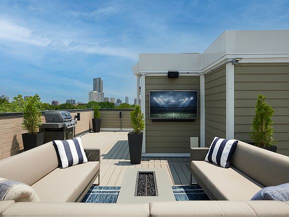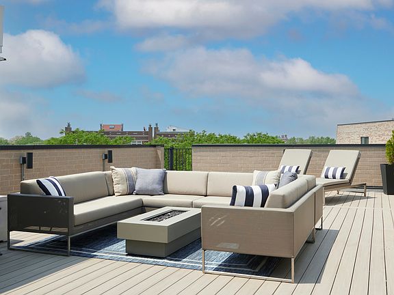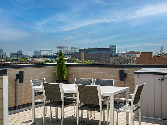 New construction 2 bed/ 2 bath penthouse with private roofdeck in the heart of Lake View! Windows on all 4 sides of home allowing for natural light to pour in throughout the day! Solid white oak flooring and 9' ceilings. Kitchen features quartz counters, modern white soft-close cabinets and drawers, Bosch high-end appliances. Large living room with gas fireplace and separate dining area + private grilling balcony. Primary suite w/ professionally organized closets, spa bath w/ steam shower and heated floors! Generous 2nd bedroom and full bathroom. Side-by-side, full-sized laundry. Incredible private rooftop with upgraded TimberTech decking! Top-floor dog house has small landing allowing for desk/ additional work area with window. 1 garage parking space included. Well run, all-brick 3-unit building with no upcoming specials. Just steps to Red Line, Whole Foods, Jewel and everything Lake View has to offer.