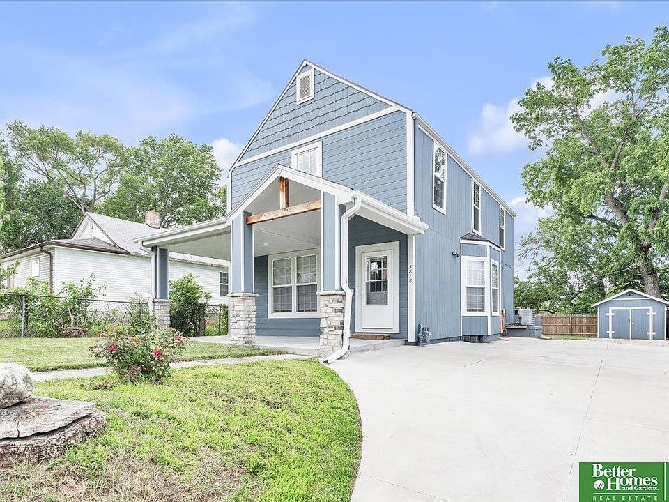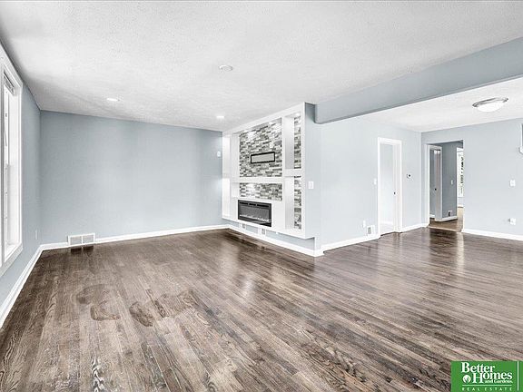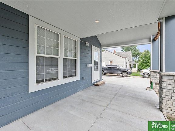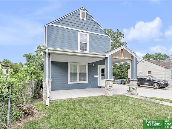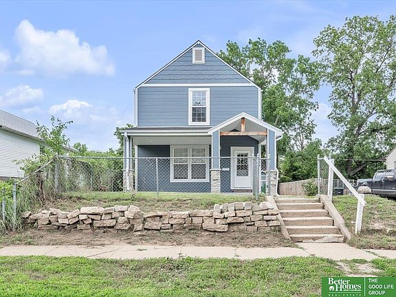 This charming 2 story has 5 bdrms, 2 bthrms and is located just a 5 minute drive from Creighton University, Nebraska Medical Center, Midtown and the popular Blackstone district. The six car parking pad and large covered front porch adorned with canned multi-colored lighting are perfect for large get togethers. The main floor features newer windows throughout and refinished real wood floors. The spacious living room boasts a beautiful electric fireplace with multi-colored lighting, and surrounded by ceramic tile. The updated, eat-in kitchen features stainless steel appliances(2022), sleek countertops, LVP flooring and immediate access to a new no maintenance deck and flat backyard. The main floor includes a bedroom and updated bathroom while the 2nd floor offers 4 more bdrms, a flex room and a large updated full bath. Easy access to Hwy 75 and Hwy 480. Just a 12 minute drive to Eppley airport. Roof 2023, AC/Furnace 2022, Exterior paint 2022