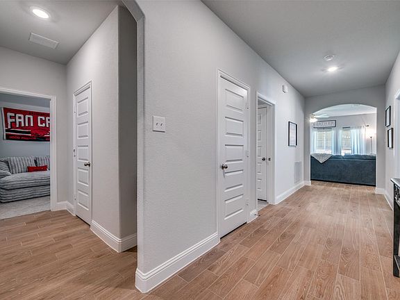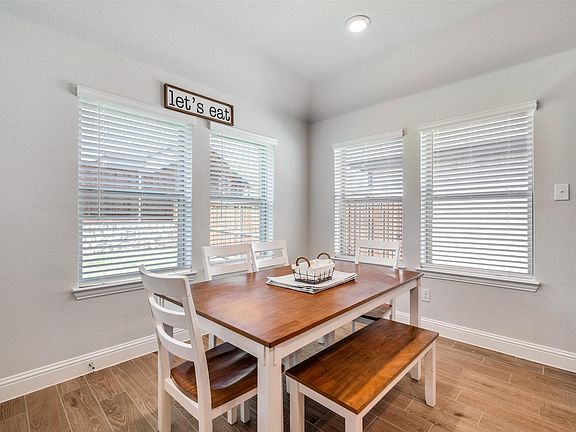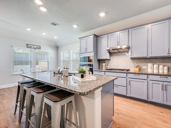 Welcome to 3828 Pearlwood Rd in Little Elm's sought-after Spiritas Ranch! This stunning 4-bedroom home with a private study and 2.5 baths offers an inviting open-concept layout, perfect for entertaining and everyday living. The spacious dining area flows seamlessly into the kitchen, breakfast nook, and family room, creating a bright and airy atmosphere filled with natural light. The primary suite is thoughtfully tucked away for privacy without being far from the main living areas. Enjoy a spa-inspired bathroom with a soaking tub, a large walk-in shower, and an expansive closet. The chef's kitchen features granite countertops, gas cooktop, stainless steel built-in appliances, elegant Mist-colored cabinetry, a herringbone backsplash, and a convenient pot and pan drawer. Hard flooring runs throughout the main areas, with carpet only in the bedrooms. Both secondary bathrooms feature spacious 5' showers in lieu of tub, shower combos, while the master bath includes both a shower and a soaking tub. Additional highlights include a covered back porch for outdoor relaxation and a double air filtration system designed to improve indoor air quality and reduce allergens. Located within Denton ISD, this home combines comfort, style, and practicality in one incredible package. Don't miss your chance to own this beautiful home in a prime location!