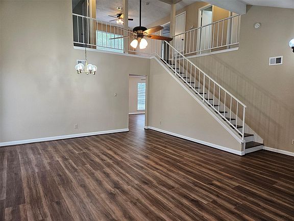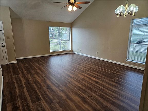 Popular neighborhood with home that features 3 bedrooms with game room upstairs, vaulted ceilings as you walk into the living and dining room, updated vinyl plank flooring throughout the entire downstairs, carpet upstairs in bedrooms and game room, solid wood stair treads, refinished counter tops in kitchen and downstairs half bath, good size rooms throughout, nice garage with workspace, backyard with patio and deck in a convenient location on a low traffic street.
