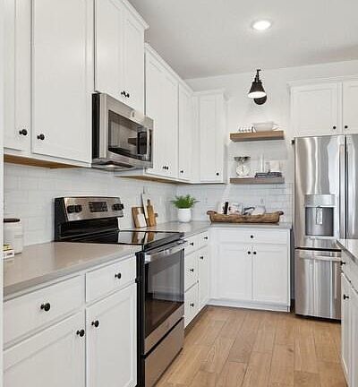 Discover Monroe Ranch, a vibrant new community ideally located near major commuter routes, entertainment, and outdoor recreation. The inviting Godavari plan offers 3 bedrooms and 2 baths with Farmhouse-inspired design that blends classic charm and modern comfort. The gourmet kitchen stands out with Grey cabinets, Satin Nickel hardware, Carrara Miska quartz counters, a spacious island with sink, and GE stainless-steel appliances, including the refrigerator. The open dining area and great room create the perfect setting for gatherings, while the split floor plan ensures privacy for the serene primary suite, complete with dual sinks, a large walk-in shower, and an expansive walk-in closet. Experience comfort, style, and convenience all waiting for you at Monroe Ranch.